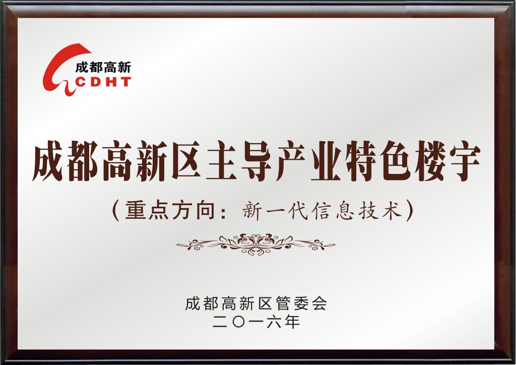 2016年成都智能信息產(chǎn)業(yè)園被成都高新區(qū)管委會授予“成都高新區(qū)主導(dǎo)產(chǎn)業(yè)特色樓宇”。