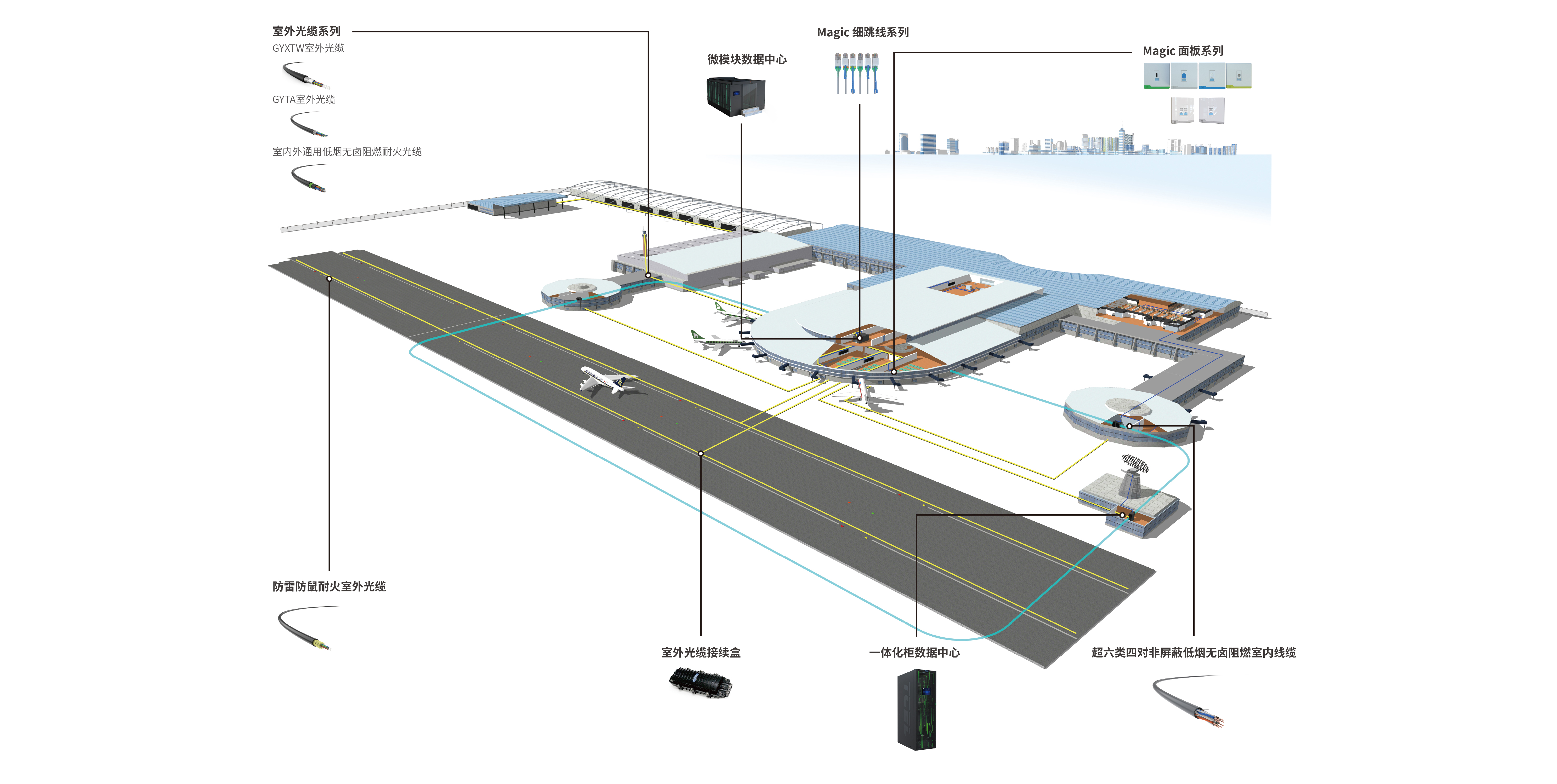 我國(guó)民航客運(yùn)量高達(dá)6.1億人次,為保證高密度的人流安全,預(yù)防火災(zāi)事故發(fā)生,通信光電纜必須采用低煙、無(wú)鹵、阻燃、耐火、無(wú)毒性材料;機(jī)場(chǎng)建筑跑道一般都在2KM以上,所提供的光纜中間不得有接續(xù)熔接點(diǎn);同時(shí)為了更好的區(qū)分民航各業(yè)務(wù)系統(tǒng),信息插座須具備可視化的顏色與標(biāo)識(shí)管理。通常航站樓至信息中心或機(jī)場(chǎng)電話站的通信線路宜采用雙路由敷設(shè),且通信配線需從可管理、易維護(hù)、冗余性、易擴(kuò)容方面考慮采用高密度配線架、帶匙跳線、智能配線管理系統(tǒng)等;應(yīng)對(duì)雷雨等極端惡劣天氣須采用防雷的非金屬材料;機(jī)場(chǎng)一般位于郊區(qū),易發(fā)生蟲(chóng)鼠害,通信光電纜需要防護(hù)齲齒動(dòng)物撕咬;為提高雷達(dá)站導(dǎo)航信息的及時(shí)率與準(zhǔn)確率,雷達(dá)站機(jī)房需采用本地化邊緣計(jì)算方式;民航數(shù)據(jù)中心作為整個(gè)機(jī)場(chǎng)的“大腦“,易采取模塊化部件的建設(shè)方式。